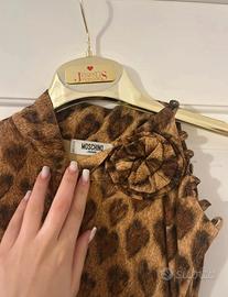 Elegante completo Moschino vintage con giacca e vestito senza maniche leopardati. Ideale per eventi speciali o serate glamour. Stile unico e alla moda, perfetto per chi ama distinguersi con audacia ed eleganza. Ottimo stato, garantisce un look affascinante e sofisticato.