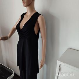 Vendo completo in morbidissimo e leggero tessuto misto made in Italy, colore nero, marca Francesca Ferrante, composto da una camicetta senza maniche con scollatura e taglio impero e pantaloni con elastico in vita e leggermente a zampa. Il tutto come nuovo, in ottime condizioni. Misure in cm pantaloni: lunghezza 107, larghezza 27, cavallo 80, camicetta spalle cm 33, lunghezza cm 80, taglia M. Vera occasione