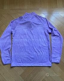 1. Maglia a maniche lunghe color lilla melange, modello mezza zip con dettagli riflettenti.