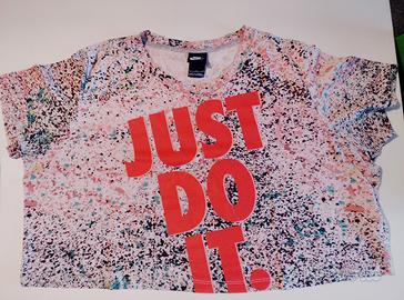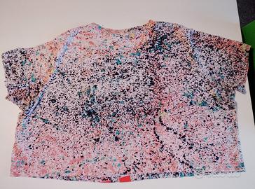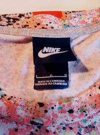 Vendo completo sportivo Nike (maglia crop top e pantaloncini) abbinato, fantasia a schizzi di vernice, in ottime condizioni - Marca: Nike - Taglia: L