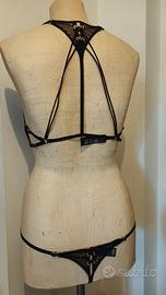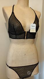 Completo reggiseno e perizoma Aubade colore nero, NUOVO, mai indossato, etichetta integra, scatola regalo BOX integra, Linea Boite a desire. taglia unica, veste tg. 3, regolabile tg. S, L . Il reggiseno é regolabile dietro con gancetti , spalline regolabili, il perizoma é regolabile sui fianchi, veste comodamente senza segnare. Richiesta 110.00€ prezzo di listino euro 145,00