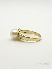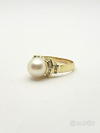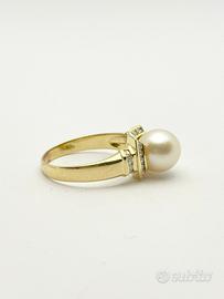 L'anello di grammi 5.43 impreziosito da diamanti naturali forma tonda e taglio a brillante e perla coltivata.