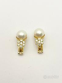 Gli orecchini a clip di grammi 5.66 sono impreziositi da diamanti naturali forma tonda e taglio a brillante e perle coltivate.