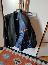vestito da uomo nero ,con lavorazione sul tessuto, taglia 46/48 come nuovo ,usato una volta,foderat all'interno,si può usare anche x feste importanti, taglia 46/48