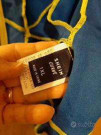 arriva sopra la vita, sotto al seno se siete alte più di 1,60 cm). Riporta la taglia 1XL(50) ma veste comodamente una taglia 54 ed è molto elastico. Molto particolare grazie alle fessure nell'area del seno.