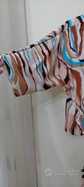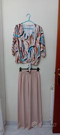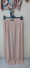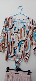 pantalone donna beige con elastico in vita. misura m/ l. blusa colorata in cotone .