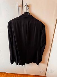 Elegante completo Paoloni in colore nero. - Giacca con revers in raso. - Pantaloni coordinati. Abito usato pochissime volte, prodotto di altissima qualità. Ottima vestibilità Prezzo di listino 689€