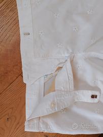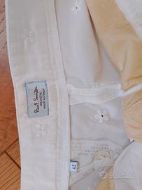 Composto da casacca con abbottonatura anteriore e pantalone pinocchietto. Rifiniture in pizzo Sangallo.