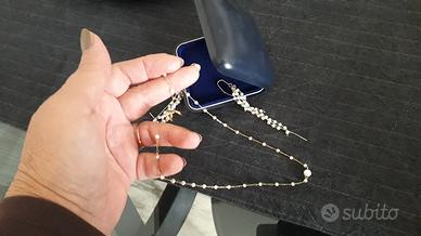 Offro in scatola regalo girocollo con perline e pezzo centrale piu grande insieme a orecchini lunghi a più fili: parure artigianale, realizzata a mano, molto fine ed elegante. Non spedisco