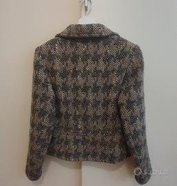 Completo sartoriale pied de poule con giacchino corto e gonna in calda lana. Il giacchino e' foderato e ha bottoni gioiello. Anche la gonna ha la fodera.