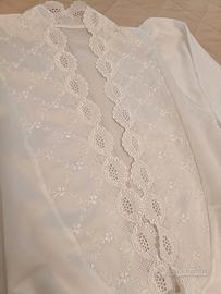 Pigiama elegante da donna completo (vestaglia lunga + camicia + pantalone), ricamato come da foto. Pantaloni dal taglio ampio, con elastico per maggiore praticità.