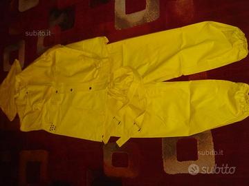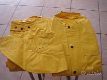 Completo pioggia in pvc pesante colore giallo in tre pezzi,giacca,pantalone e