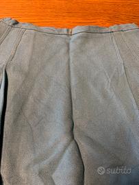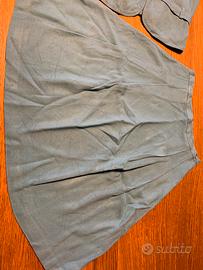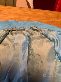 Completo con giacchina a maniche corte, cinturino e fodera interna, ha dei segni di usura per un appendino di ferro, la gonna e larga e morbida ma sulla schiena ha un segnetto in vita.