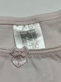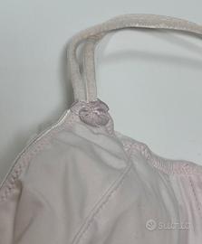 Completo 2 pezzi in microfibra rosa chiaro e dettagli in pizzo, composto da: * Reggiseno con ferretto taglia 75B * Slip coordinato taglia S