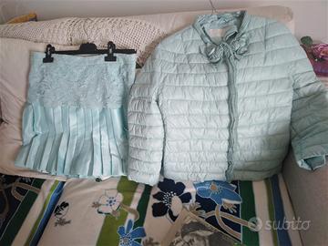 -gonna pieghettata, colore verde acqua marina, taglia 42/44, lunghezza cm 46, usata pochissimo, prezzo ? 45