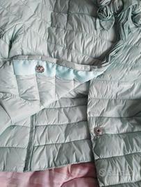 -giacchina trapuntata, dello stesso colore (leggermente più chiara), con chiusura in automatici, pieghettatura a decoro che intorno al collo è abbellita da piccole roselline, taglia 42/44, prezzo ? 55.