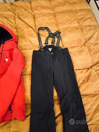 Completo da sci con giacca in Dermizax®EV e morbida imbottitura in vera piuma, con tasche interne ed esterne e ghetta antineve con fondo in silicone nell’interno manica.