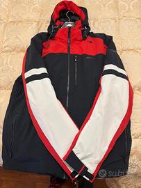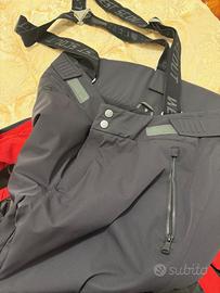 Splendido completo da sci per uomo taglia 58, composto da giacca e pantalone in tessuto tecnico, antivento, impermeabile (10.000 colonne acqua). Firmato West Scout originale. Condizioni ottime, indossato pochissime volte, lavato e pulito. Colore di base nero con contrasti bianco e rosso. Con stampella nera originale.