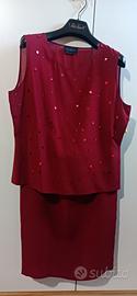 Completo in seta composto da canotta smanicata con paillettes e chiusura sul fianco con gonna foderata. Verificare le misure, a mio parere veste meno delle taglie indicate. Canotta tg. 48, spalla cm.8, spalle cm.37, punto seno cm. 51, vita cm 46, fondo cm 49, lungh. cm. 54. Lievi aloni sulle ascelle come da penultima foto.