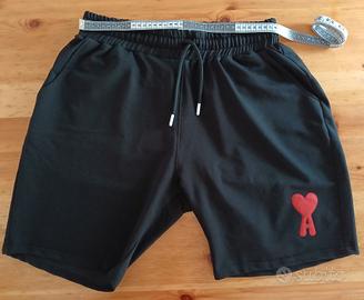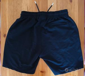 Completo t-shirt e pantaloncini da uomo, stile rapper, colore nero, misure come da foto, pantaloncini con tre tasche, quella posteriore con zip