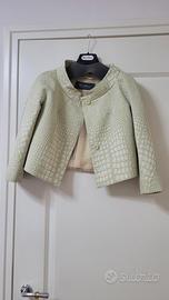 Questo capo è un tailleur elegante composto da un abito tubino e una giacca corta coordinata con manica a 3/4, caratterizzato da una particolare trama in rilievo effetto coccodrillo. ideale per cerimonia utilizzato una sola volta. taglia M/42