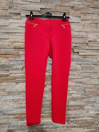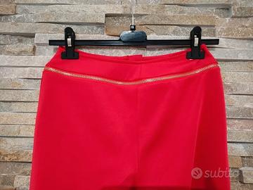 Coordinato composto da giacca elegante senza colletto e pantaloni a gamba dritta. Colore rosso intenso con dettagli in zip dorata, ideale per outfit formali, cerimonie o look professionali curati.
