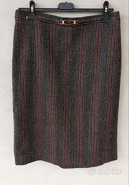 Completo tailleur sartoriale Zanobetti Firenze, donna, tg 48, in lana, rosso e nero a righe.