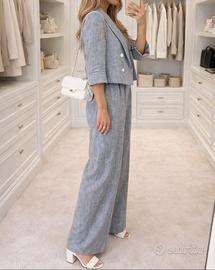 Completo Zara composto da blazer corto con maniche a tre quarti e pantalone a gamba larga. Tessuto leggero effetto lino, perfetto per primavera/estate 🌿 💎 Vestibilità moderna e raffinata 💎 Colore grigio chiaro facile da abbinare 💎 Ideale sia per look casual chic che elegante 📏 Taglia: giacca S pantaloni XS 📌 Condizioni: pari al nuovo 💫 Perfetto per: ufficio, aperitivi, eventi o outfit minimal super trendy Muy elegante y versátil, perfecto para un look sofisticado y fresco 🇫🇷 Très chic et moderne, idéal pour un style élégant sans effort #zara #tailleur #setcompleto #chicstyle #minimalstyle #springoutfit #summerlook #vinteditalia #elegante #outfitinspo #modadonna #tendance #styleparisien #lookdelujo