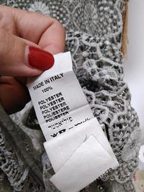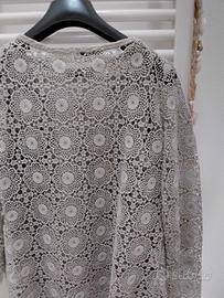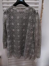 twin set composto da canotta a spalla larga e giacchino chiuso da bottone gioiello, color salvia, tutto lavorato a motivo floreale traforato, elegante ma comodo. Perfette condizioni, ha solo un forellino nella tramatura per inserire il bottone, Made in Italy, taglia M (veste dalla 40 alla 44 italiane). brand SusyMix