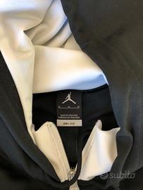 Vendo per cambio taglia tuta completa (giacca e pantalone) Nike Air Jordan colore nero inserti bianchi, tessuto tecnico dri-fit. Perfetta, ovviamente originale, taglia M (veste abbondante), indossata un paio di volte per poche ore. No perditempo, prezzo non trattabile.