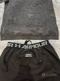 Completo sportivo Under Armour originale composto da maglia + pantaloncini, perfetto per palestra, running o outfit estivo 🔥 ✅ Taglia: M ✅ Colore: nero con fantasia effetto marmo ✅ Condizioni: ottime, usato pochissimo ✅ Tessuto tecnico traspirante (tipo HeatGear) ✅ Logo stampato davanti su entrambi i pezzi ✅ Pantaloncini con elastico + laccetto regolabile ✅ Comodissimo e leggero Fit perfetto, sta benissimo sia per allenarsi che per outfit street 🖤 ⸻ 💸 Prezzo trattabile per vendita veloce 📦 Spedizione disponibile 📩 Scrivimi per info o offerte