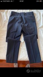 Completo uomo John Barritt, blu a fantasia, 60% lana 40% poliestere. Giacca con spalline, due bottoni e tasche classiche. Pantalone con tasche dietro e bottone. Taglia 48. Usato una sola volta.