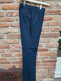 perfetto per cerimonia. taglia 46. giacca e pantalone. giacca con 2 tasche taschino sulla sinistra 3 tasche interne. serie flexo in lana vergine ( 98% ) + 2 % elastene. lanificio comero. blu. pantalone con tasche laterali e 2 posteriori.