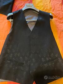 Completo firmato Nazareno Gabrieli color nero, composto da giacca, pantalone, gilet e simil cravatta larga