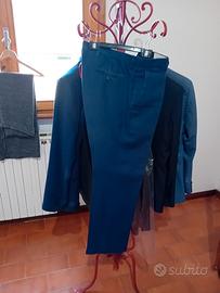 completo da uomo di lino, freschissimo della Conbipel, blu ma non scuro, taglia 48, spacchi laterali sul dietro. indossato da un uomo di mt 1.70