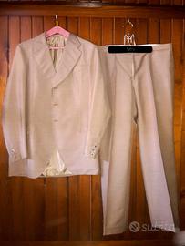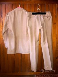 Completo uomo estivo, in lino color cammello realizzato completamente a mano. Giacca foderata 3 bottoni, 2 tasche, 1 taschino esterno, manica 3 bottoni, 2 taschini interni di cui uno con bottone. Pantalone classico con pieghe, 2 tasche con bottone sul retro e taschino lato sinistro. MISURE PANTALONE: - girovita: 96cm - girofianchi 112cm - lunghezza interno gamba: 78cm - cavallo:31cm MISURE GIACCA: - spalle: 43cm - lunghezza giacca: 81cm - torace:108cm - lunghezza manica: 65cm Altri modelli disponibili sia estivi che invernali. Preferibile ritiro a mano. Prezzo non trattabile.