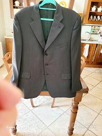 Completo giacca piu pantaloni eleganti da uomo. Monopetto con tre bottoni centrali, tre alle maniche più due spacchi laterali sul fondo schiena . TG 58.. Il pantalone ha 2 tasche laterali più un piccolo taschino sotto la cintura