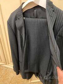 Vendo completo giacca blazer e pantaloni della linea TDM di Massimo Rebecchi, in 90% lana vergine e in colore blu scuro scuro. Fresco di lavanderia. Taglia giacca 52, taglia pantaloni 50.
