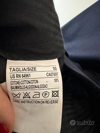 Vendo completo blu navy marca United Colors of Benetton da uomo taglia 50, compreso di pantaloni e giacca (ne ho uno anche beige identico). 100% cotone. Entrambi regalati a Natale e mai utilizzati per misure errata (ma l’etichetta è stata staccata). Giacca: rifinture interne pregiate, chiusura a doppio bottone frontale con 2 tasche e taschino, 2 spacchi sul retro, taschino interno. Pantaloni: rifinitiure interme pregiate, chiusura con bottone e zip, tasche davanti a taglio e tasca posteriore con bottone. Prezzo sul sito ufficiale: 89,95€ per ciascun pezzo per un totale di €179,90. Vendo completo intero per 79€ meno del costo di un singolo pezzo. Disponibile a far visionare il prodotto senza obbligo di acquisto per chi è di Roma.
