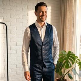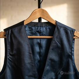 Completo elegante blu navy lucido perfetto per cerimonie ✨🤵 Taglia 52, usato una sola volta, condizioni pari al nuovo senza difetti 👌📏 Gilet con taschino e pantalone classico con piega, tessuto satinato di qualità 🔝🧵 Spedizione veloce 🚚 #completo #uomo #cerimonia #elegante #blu