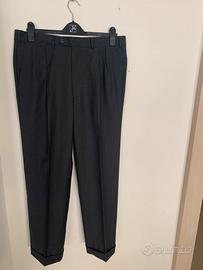 Completo sartoriale da uomo, elegante di color grigio , composto da giacca con due bottoni ,tasche a filetto con pattina più taschino. Pantalone con risvolto , due pence e tasche a filetto , taglia 50 . Ben conservato usato una sola volta per una cerimonia.