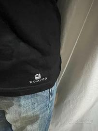 Completo composto da jeans tg 34 (circonferenza vita 87), lunghezza della gamba dal cavallo 73 cm. E maglietta smanicata Domyos in cotone nero tg L, spalle 46 cm, Lungh. maglia 71 cm.