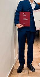 Vendo il mio completo di laurea sartoriale, giacca doppiopetto + pantaloni marca Lanieri 100% Made in Italy. Pagato 1.500,00€, vendo a 990€. Utilizzato in un’unica occasione, nessun segno di usura o deterioramento, pari al nuovo.