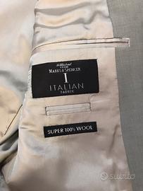 Vendo nuovo con cartellino bellissimo completo uomo giacca + pantalone completamente foderato in tessuto leggero di color grigio chiaro TG.XL MARKS & SPENCER.