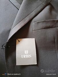 completo uomo di Urbis in fresco lana con giacca a 3 bottoni e collo con profili in raso. pantalone con orlo da fare su misura. colore nero tg 54 made in Italy mai indossato ideale per cerimonie