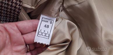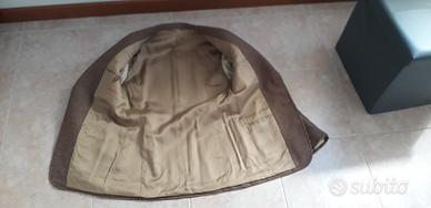 È in tessuto di lana nei toni del marrone/bruciato/beige. La giacca è monopetto , completamente foderata. I pantaloni si allargano leggermente nella parte inferiore. Manifattura e finiture di qualita. Originale fine anmi '80. Taglia 48. Condizioni perfette, usato forse 2/3 volte, consevato benissimo. Possibilità di consegna a mano a rovigo o nelle vicinanze.