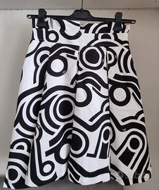 gonna in tessuto bianco e nero e teeshirt nera con logo in paillettes. originale mai indossato