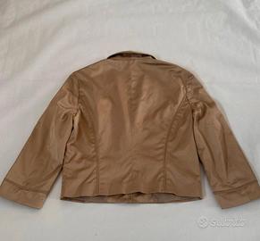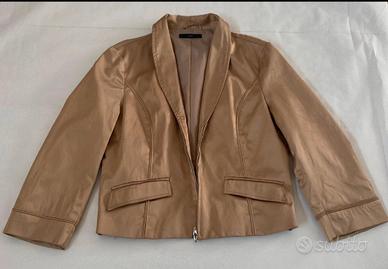 completo vintage composto da blazer e vestito. Giacca di colore oro/bronzo. Abito nero nella parte superiore con coulisse che permette di adattarlo al proprio seno con una bellissima arricciatura e parte inferiore bianca con motivo floreale nero e tinta del blazer. Taglia M, brand SASCH