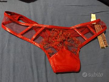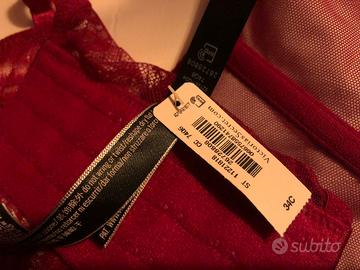 Vendo completo intimo nuovo mai indossato Victoria’s Secret originale rosso laccato, ancora con cartellini originali. Corsetto push up taglia 3* coppa C come da cartellino in foto, perizoma laccato rosso taglia S.