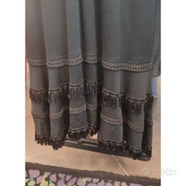 Completo Vintage FERRETTI STUDIO: Abito Lungo + Sciarpa Velvet Anno:1990 c.a. Acquisizione: 02-02-2026 Provenienza: privato donna di Bergamo Stato conservativo: molto buono Funzionamento: indossabile subito - sera- Descrizione:Rarissimo set coordinato Ferretti Studio (Made in Italy) composto da abito lungo nero in maglia e sciarpa in morbido velluto sintetico coordinata. Un look d'archivio anni '90 perfettamente conservato, taglia IT 44. L'abito presenta un fondo scenografico a balze e frange che regala movimento alla camminata, mentre la sciarpa aggiunge un tocco di texture sofisticata. Un pezzo da collezione ideale per eventi serali o cerimonie invernali che richiedono un'eleganza discreta ma d'autore. Capo ben tenuto, senza segni d'usura. #ferrettistudio #vintage90s #abitocerimonia #madeinitaly #velvetdetails